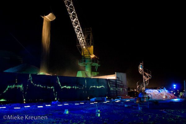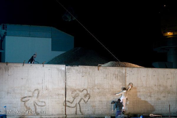 Woensdag ging de voorstelling TO BE TO NOT BE in première, boven de Coentunnel in Amsterdam, een vlammende voorstelling als ode aan de poëzie van brandend beton. De spelers stampen met hun voeten in zand en cement, spuiten water en vuur met hun handen en hakken steen in brokken.